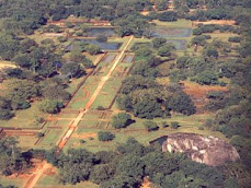 natural forms of the surroundings. On the west side of the rock lies a park for the royals, laid out on a symmetrical plan; the park contains water retaining structures, including sophisticated surface/subsurface hydraulic systems, some of which are working even today. The south contains a man made reservoir, these were extensively used from previous capital of the dry zone of Sri Lanka. Five gates were placed at entrances. The more elaborate western gate is thought to be reserved for the royals.The gardens